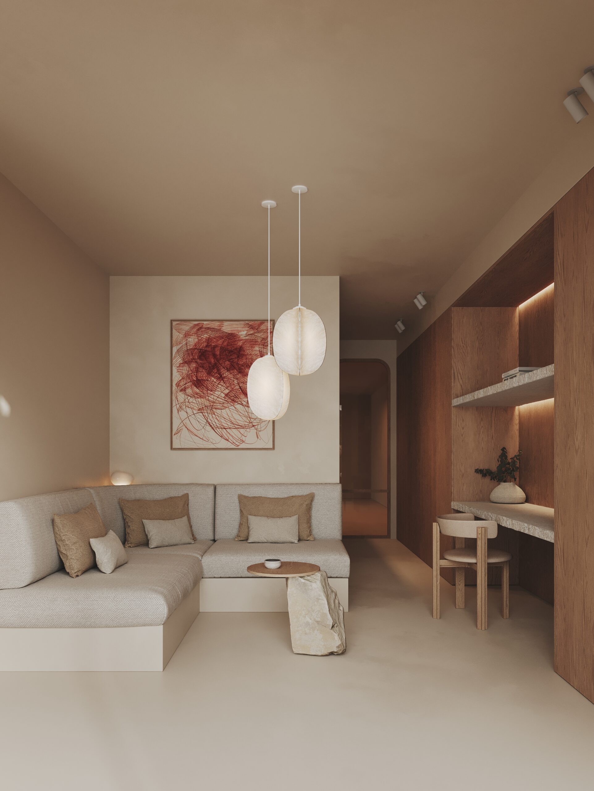 La suite és l’espai que marca el to de la reforma, amb línies orgàniques i un ambient obert que convida al descans. La connexió amb la terrassa amplifica la sensació d’amplitud i de diàleg amb la llum natural, mentre que el disseny busca mantenir-se discret però amb empremta pròpia. Cada element s’ha plantejat per reforçar la idea de serenor i d’harmonia, sense recarregar però donant caràcter.